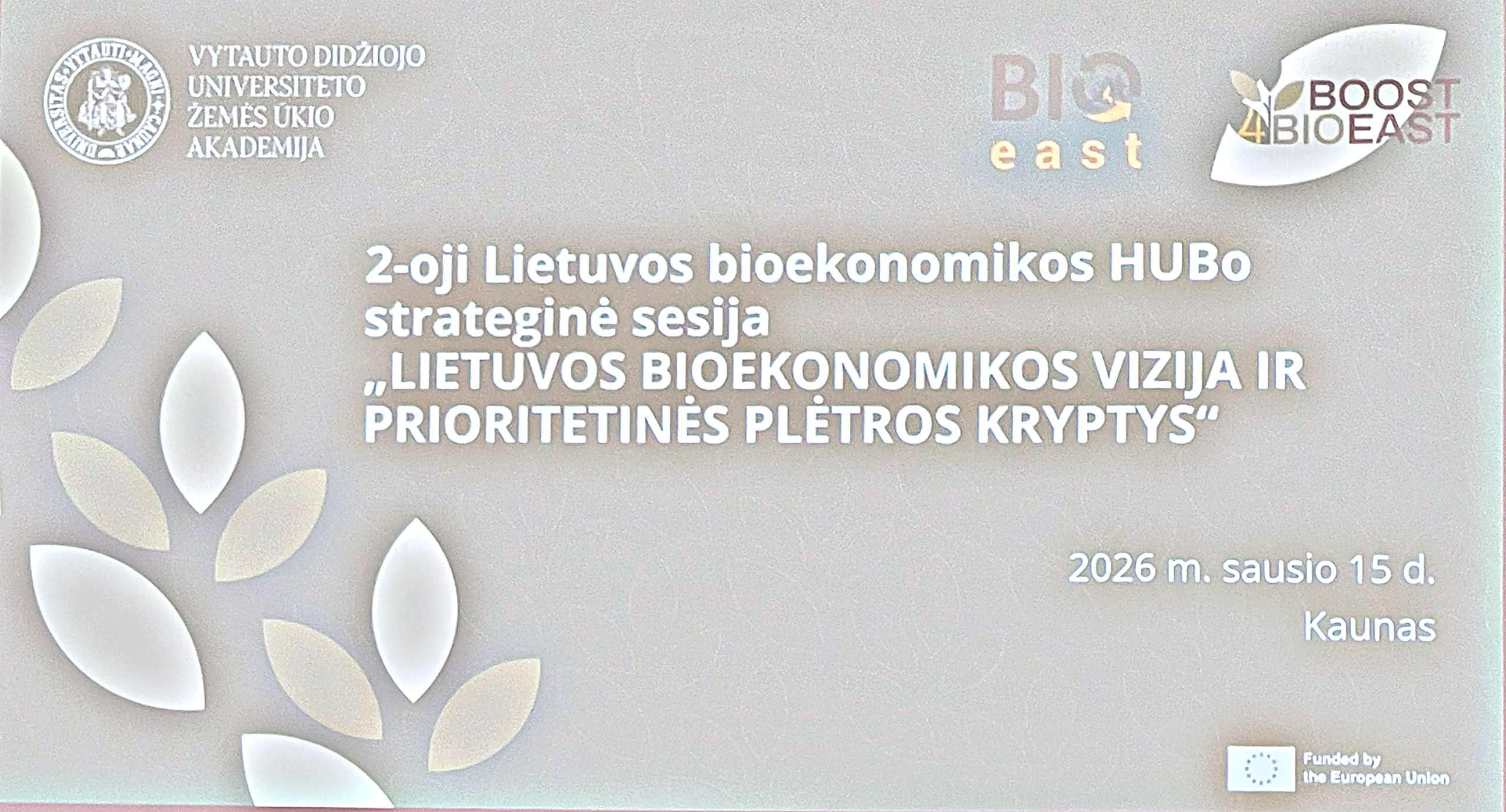 On 15 January 2026, the 2nd Lithuanian Bioeconomy HUB Strategic Session titled “Lithuania’s Bioeconomy Vision and Priority Development Directions” took place in Kaunas at Vytautas Magnus University Agriculture Academy. The event brought together representatives from science, industry, and public institutions to discuss the future of Lithuania’s bioeconomy and strengthen collaboration across the sector.
